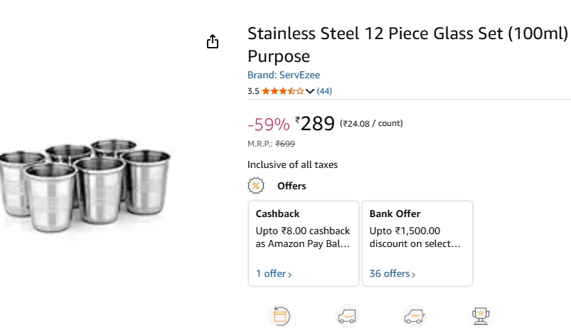 | Stainless Steel | ₹50 | 130 | ₹6,500 |